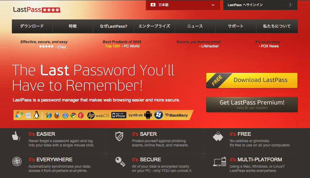Lastpassのパスワードさえ覚えておけば